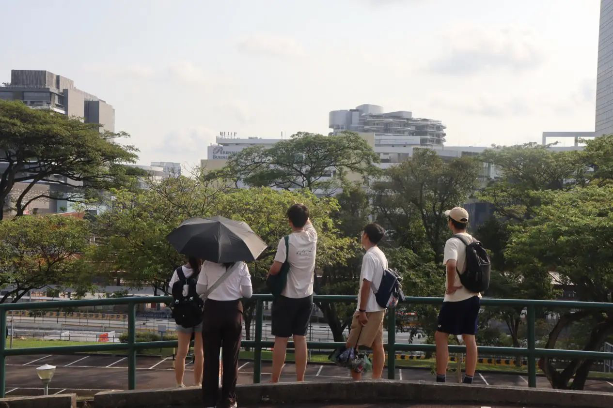 8月7日下午,实习团队前往南洋理工大学交流访问,调研高校社区场地设计、建筑形态、生活空间营建等方面的内容。漫步在以生活服务设施为中心的空中廊桥,同学们先后参观了公共教学楼、图书馆和学院行政楼,切实感受南洋理工大学富有特色的“脊椎式”空间格局。