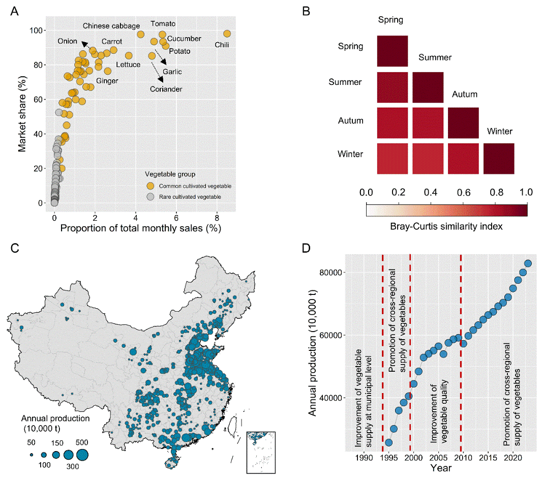 发布时间:2026-03-08蔬菜是人类饮食的重要组成部分,多样蔬菜的摄入对均衡饮食至关重要。提高蔬菜饮食多样性和可获得性仍是当前全球农业和粮食系统面临的一项紧迫挑战。在现代农业兴起之前,人们普遍依靠采集野生植物来满足蔬菜需求。经济发展和城市化深刻地影响了人们的蔬菜饮食方式,如今大多数人依赖从市场上购买栽培蔬菜。然而,当前的蔬菜供应系统在多大程度上确保人们公平的获取蔬菜资源以及野生蔬菜在提高蔬菜饮食多样性和可持续性方面具有怎样的潜力仍缺乏全面认识。