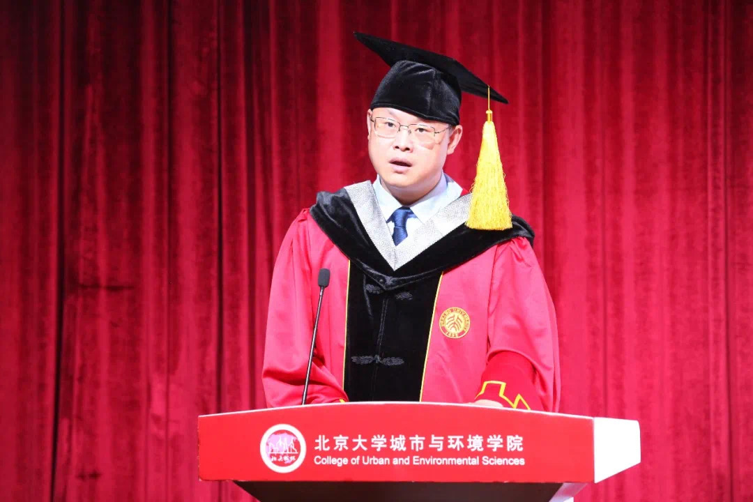 上午九点,典礼在雄壮的国歌声中正式开始。院长贺灿飞首先做题为“秉持科学理性,把握人生航向”的毕业致辞。他希望城环学子能做一个因科学理性而幸福的人。他对毕业生提出了两个期望:以主动精神追寻人生的航标,成为一个因为主动而内心安宁的人;以人文情怀去从容求索,希望同学们身上奔涌着前辈学者的精神血脉,虽不可见,却实际拥有着绵延不息的伟力。