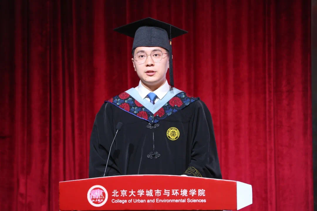 2017级博士研究生孟文君作为研究生毕业生代表发言。她分享了自己在北大、在城环的九年光阴。她倡议香港六合彩开奖直播 研究生毕业生承载着北大教给我们的知识、城环带给我们的历练,在未来的道路上发扬北大人的精神,一路向前。
