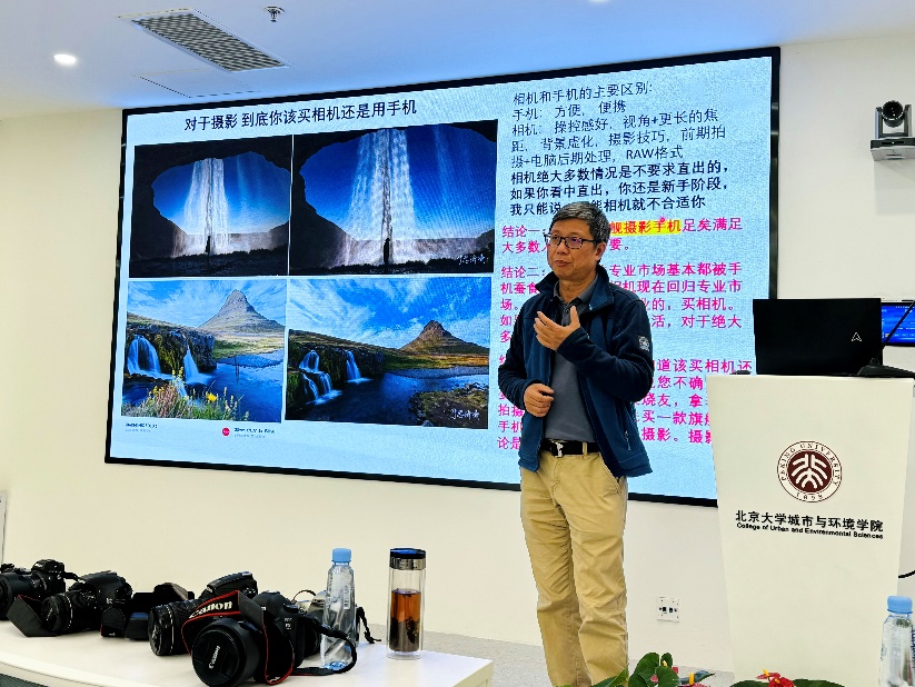 摄影培训分为四次授课。在第一次课上,张家富教授介绍了相机的分类、相机的构造、相机的基础模式,向大家展示了相机每个器材的原理与作用,现场演示了相机部分组件的使用与组装拆卸,机身的常用功能。并在单反、微单、摄影手机的选择上,提出了自己的经验和见解,帮助大家正确选择摄影器材。后面三次课程将围绕摄影构图技巧、光线运用、景深和后期处理等方面内容,于11月陆续开设。