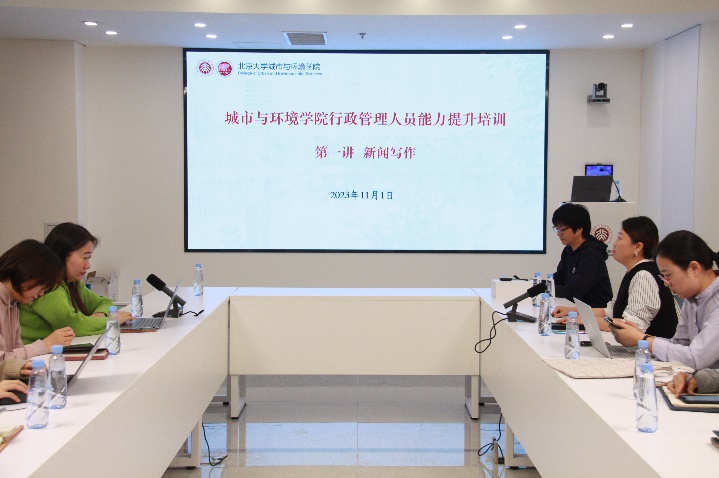 北京大学新闻网主编张宁从学校宣传平台、新闻基础知识、消息写作和学校党政新闻写作四个方面,结合自己多年采写经验进行讲授,授课内容既有理论知识又有实例分享。授课中,以大家熟悉的校内外新闻为例,深入浅出地讲解了新闻写作的知识、盲区和误区,鼓励大家大胆写、多思考,走向新闻写作的“进阶之路”——从写消息到写长文、从完成任务到扩大影响、从“谁写谁看”到大众喜闻乐见的转变。