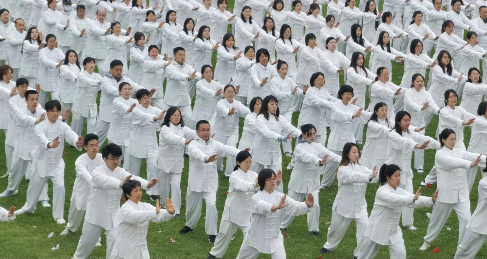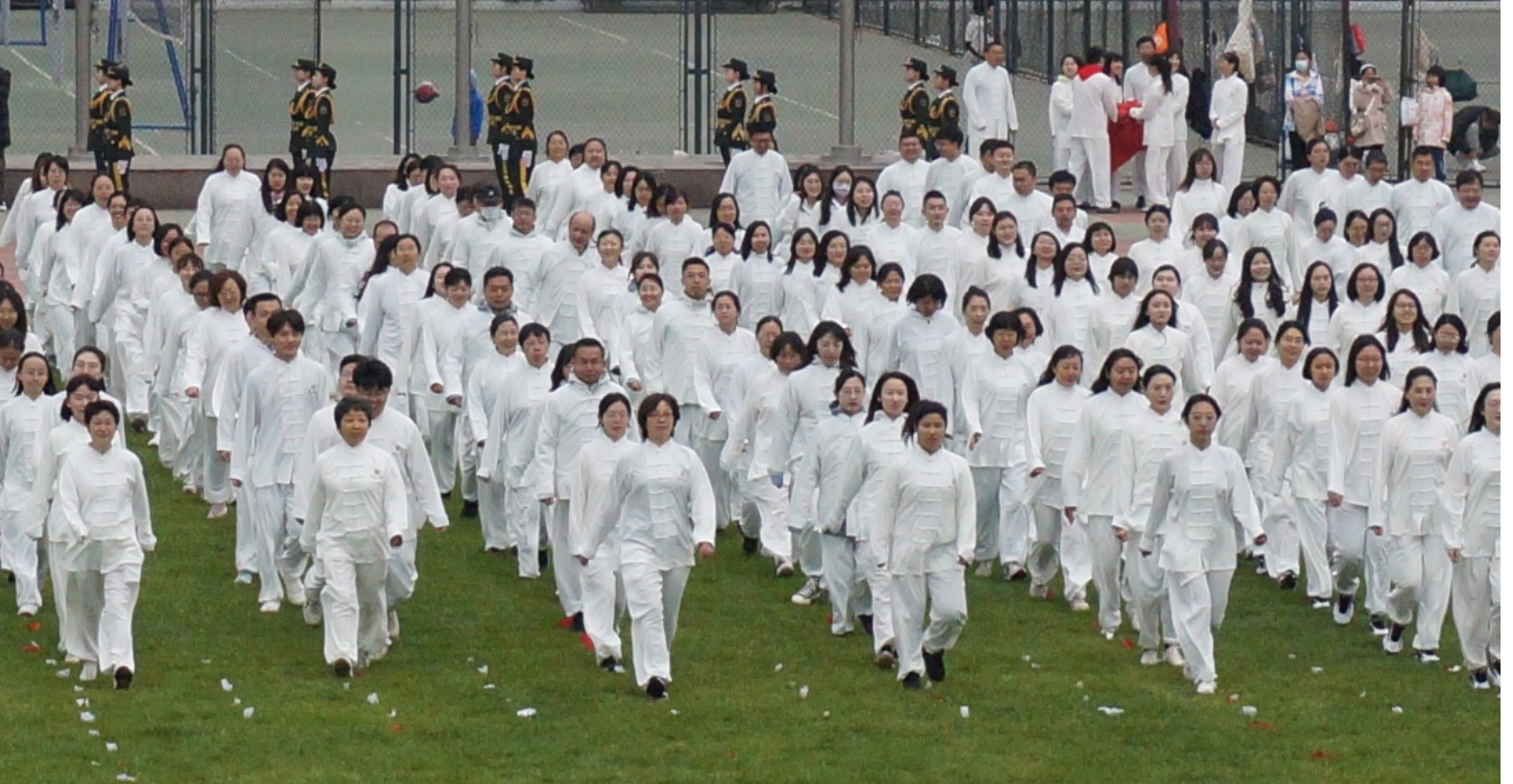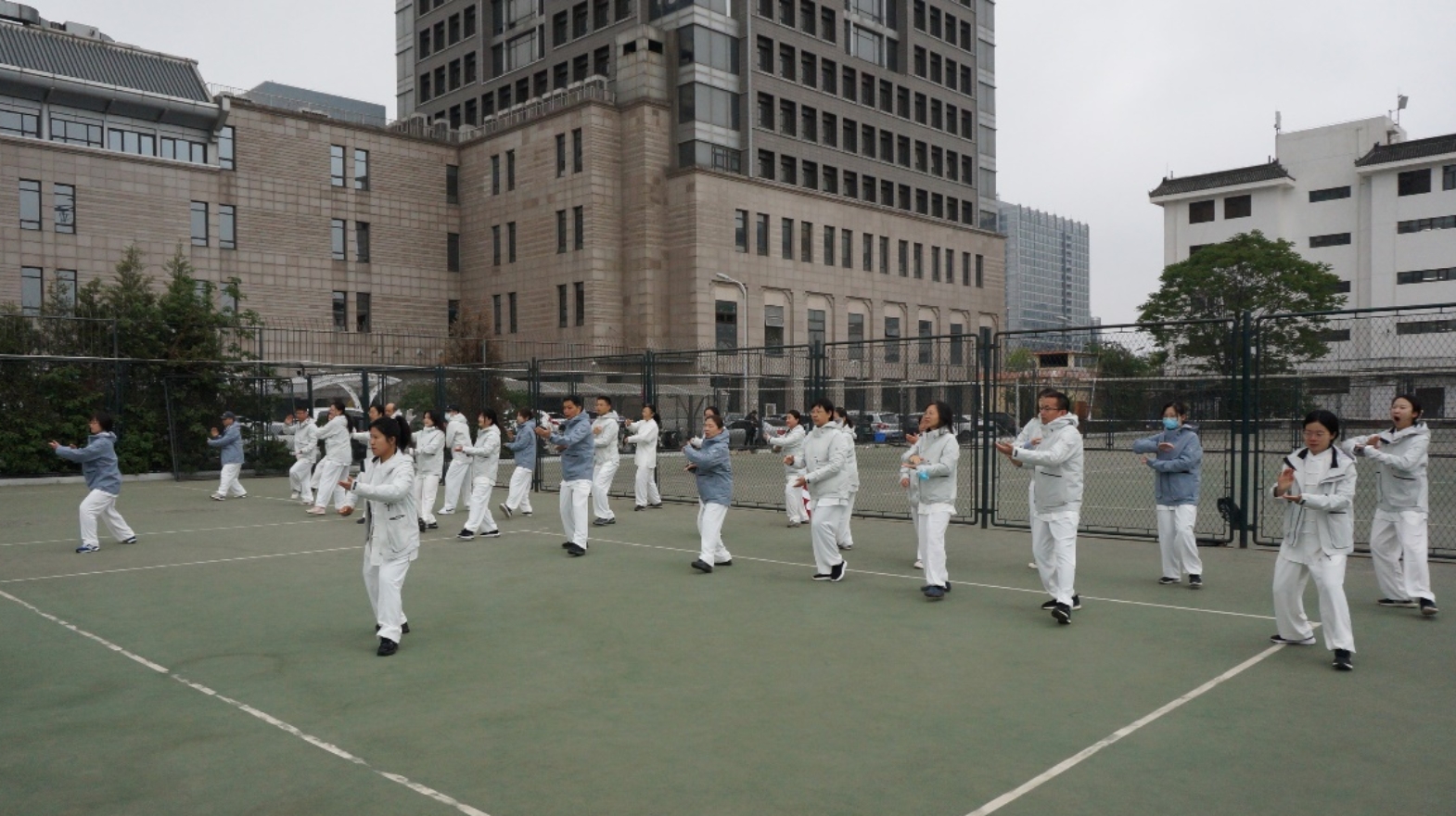 入场仪式后,30名城环教职工参与团体太极拳表演,他们穿着统一的服装,排列整齐,以统一的步伐缓慢而流畅地进行动作。