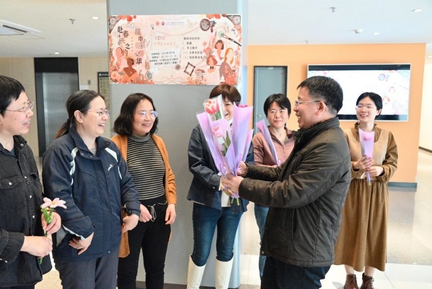 党委书记彭建、院长贺灿飞、副院长曹广忠等男教师首先为参加活动的所有女教师送上娇艳的鲜花及美好的节日祝福。