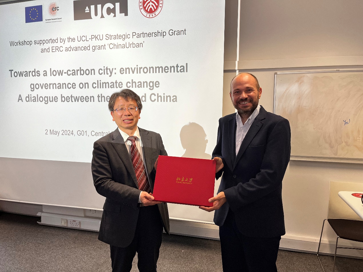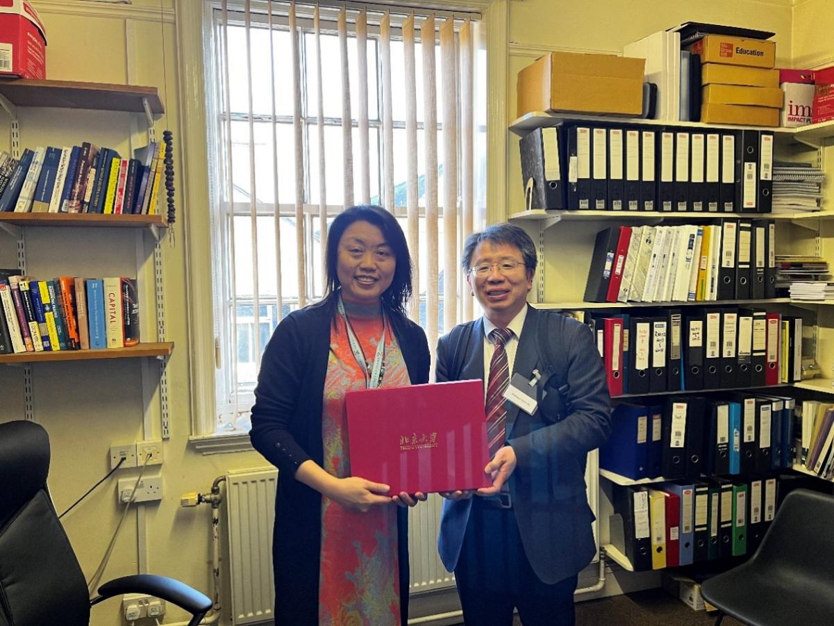 贺灿飞教授向UCL地理系赠送北京大学纪念品