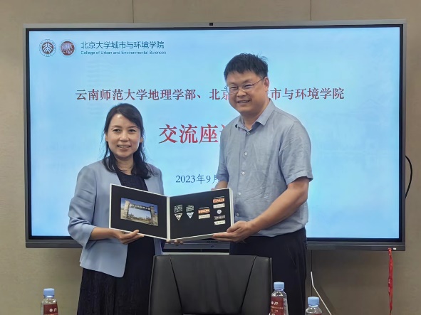 学院院长贺灿飞致欢迎辞。贺灿飞对云南师范大学地理学部的来访表示热烈欢迎。他表示,北京大学有责任和义务帮助兄弟院校,希望相互了解,发挥各自的优势,今后将在学科建设、科学研究、人才培养等方面加强交流合作。