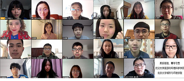 活动开始前,与会师生一同观看了新华社抗“疫”纪录片《英雄之城》。王雨频首先介绍了参加共建学习活动的两校支部的基本情况,参会师生分别进行了自我介绍,传递了在五湖四海的真挚祝福,大家通过会议平台“云”赏春,共同饱览了燕园和珞珈的美丽春色。接着,双方支部同学共同学习总书记给北京大学援鄂医疗队全体“90后”党员的重要回信,向在抗疫一线勇担重任的同龄人致敬学习。