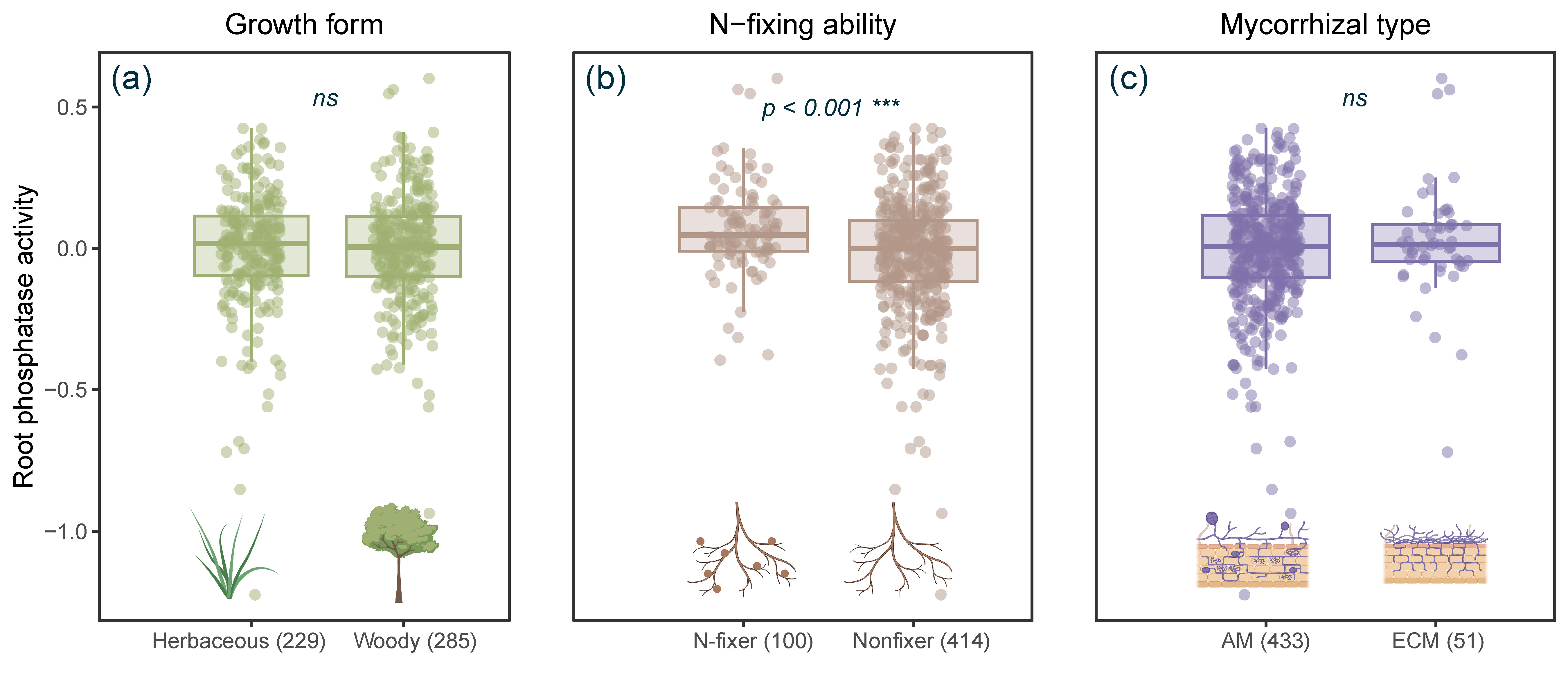 朱彪课题组在New Phytologist发文揭示植物细根磷酸酶活性与细根功能性状的关联
