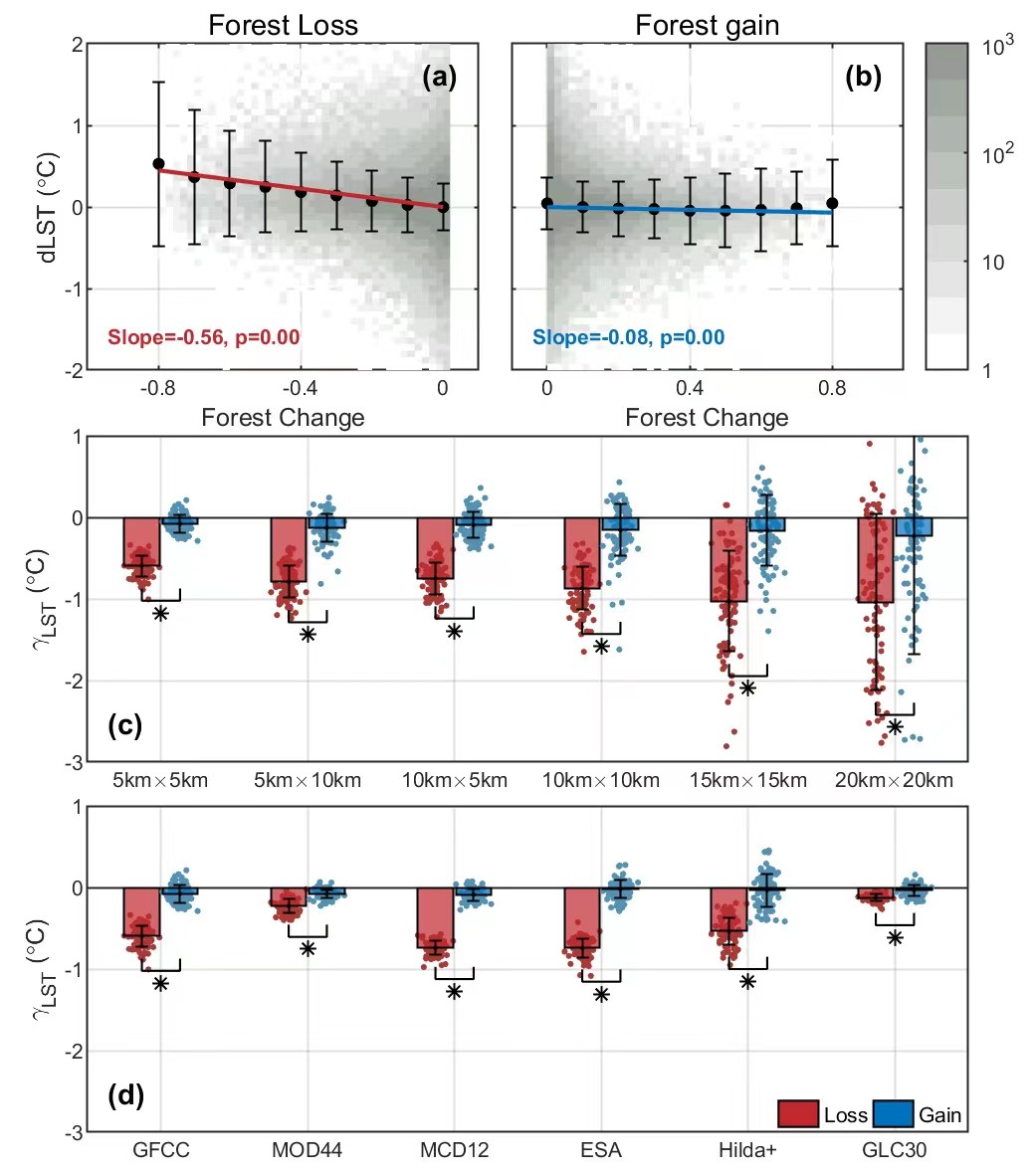 北京大学王旭辉课题组揭示热带森林增加和减少对地表温度影响的不对称性